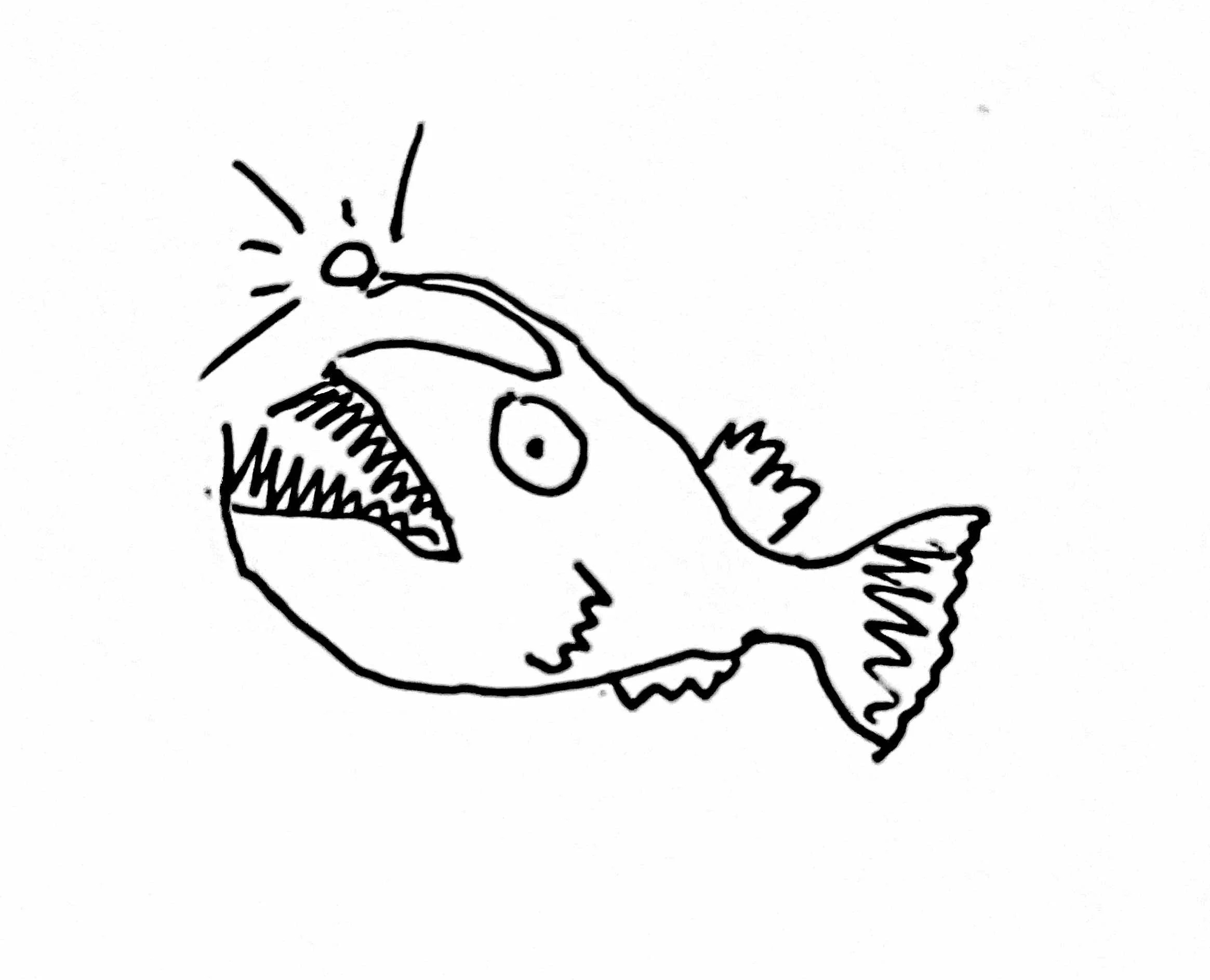 But here's what happened. Steve bragged to Jolene that he was going to catch the most anglerfish at the Lake Waller Waller fishing contest. Well, Jolene knew there was no such thing as anglerfish in Lake Waller Waller- they only lived in the deep ocean. But Steve kept on it and insisted that no, he was sure they were not in the deep sea, they were in Lake Waller Waller and he was gonna catch ‘em all. And Jolene couldn’t let him be so dumb, so she said, “Steve you better get your fish straight or you're gonna catch a whole lotta nothin'. An anglerfish has a flashlight on its head, big teeth, and it lives in the ocean!”